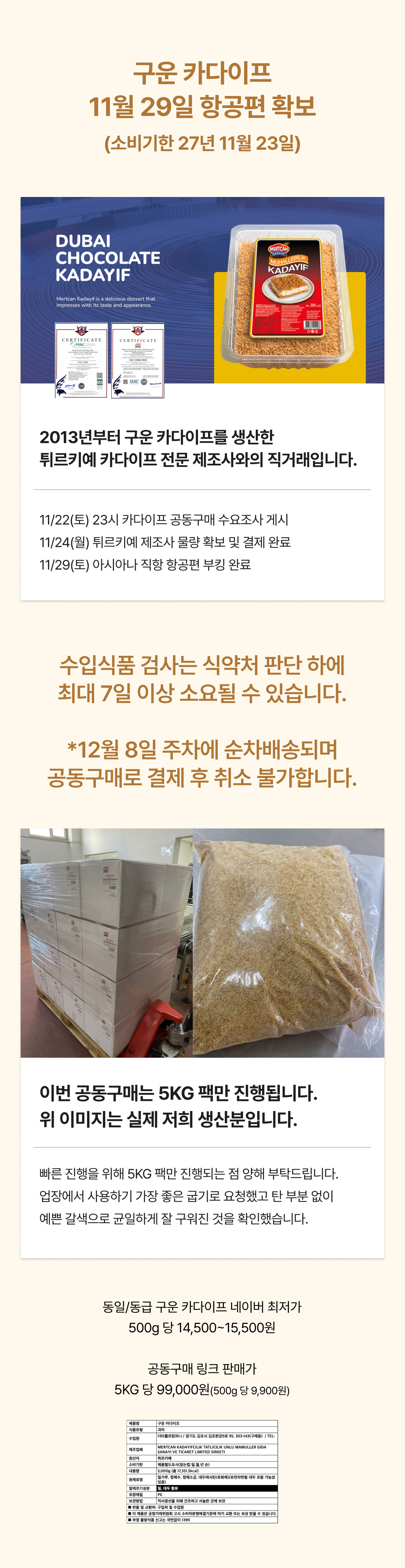 소비기한 27년 11월 27일 제품입니다. 썸네일은 참고용 이미지이며 5KG 팩으로 판매됩니다. 12월 8일 주차 순차배송되는 공동구매 상품으로 결제 후 취소가 불가합니다.