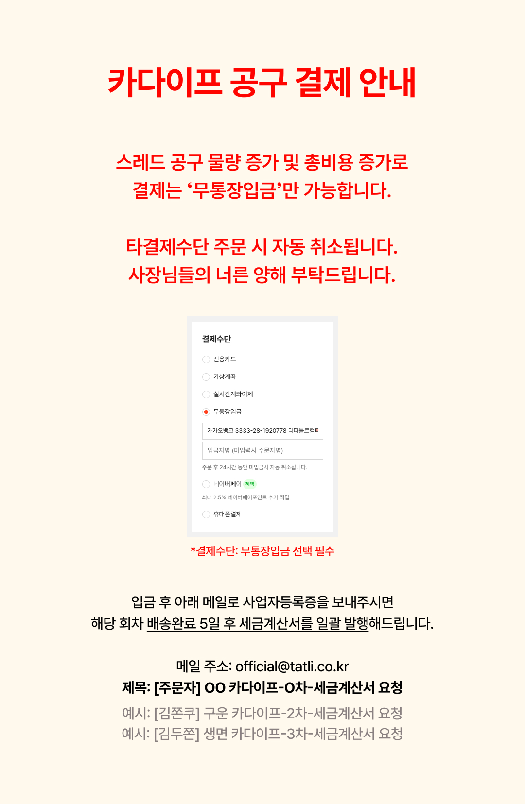 ❌ 네이버페이 결제 시 자동 취소 ❌ 무통장입금만 가능합니다. 상단 공지를 꼭 읽어주세요.